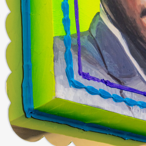 Los Angeles artist Patrick Martinez highlights civil rights leaders often overlooked in history through his distinctive “cake portraits.” These works, painted to resemble three-dimensional cakes, celebrate figures such as Angela Davis, James Baldwin, Malcolm X, and lesser-known freedom fighters like Larry Itliong. Martinez uses the cake—a universal symbol of celebration—to honor a diverse group of activists, contrasting it with traditional portraiture typically reserved for wealthy, white figures.
